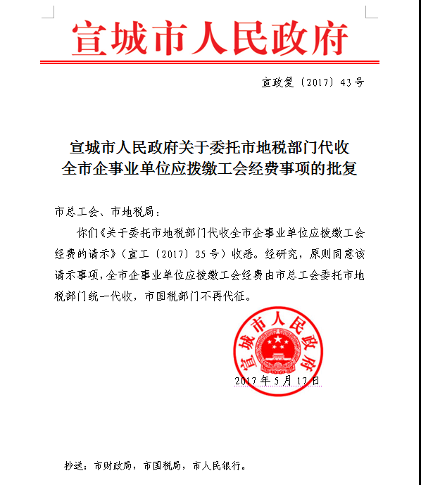 有关单位应拨缴工会经费代收比例的函20170517.doc
